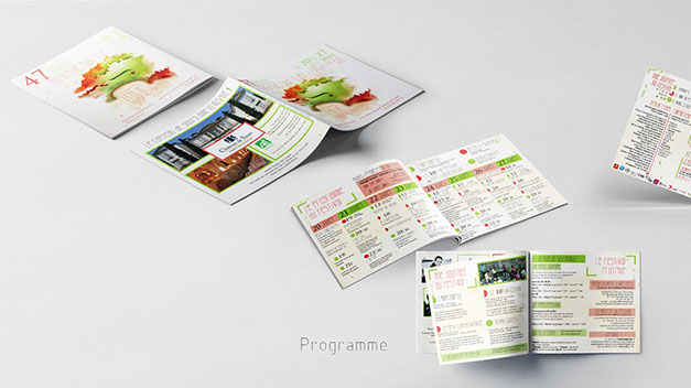 Création du flyer, affiche, abribus, roll-up, signalétique programme générale et programme de salle du festival. Participation sur site au bon déroulement du festival.